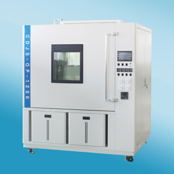 左側(cè)為試驗箱箱體,右側(cè)為風道及控制柜,風道內(nèi)裝有加濕管, 蒸發(fā)器,加熱管,風輪等裝置,通過從右側(cè)上出風,下回風形成一個風路 |